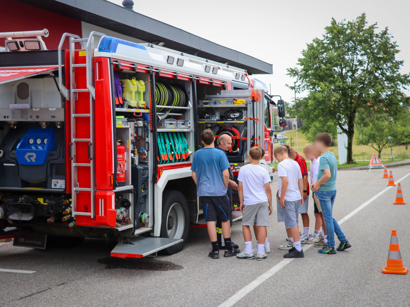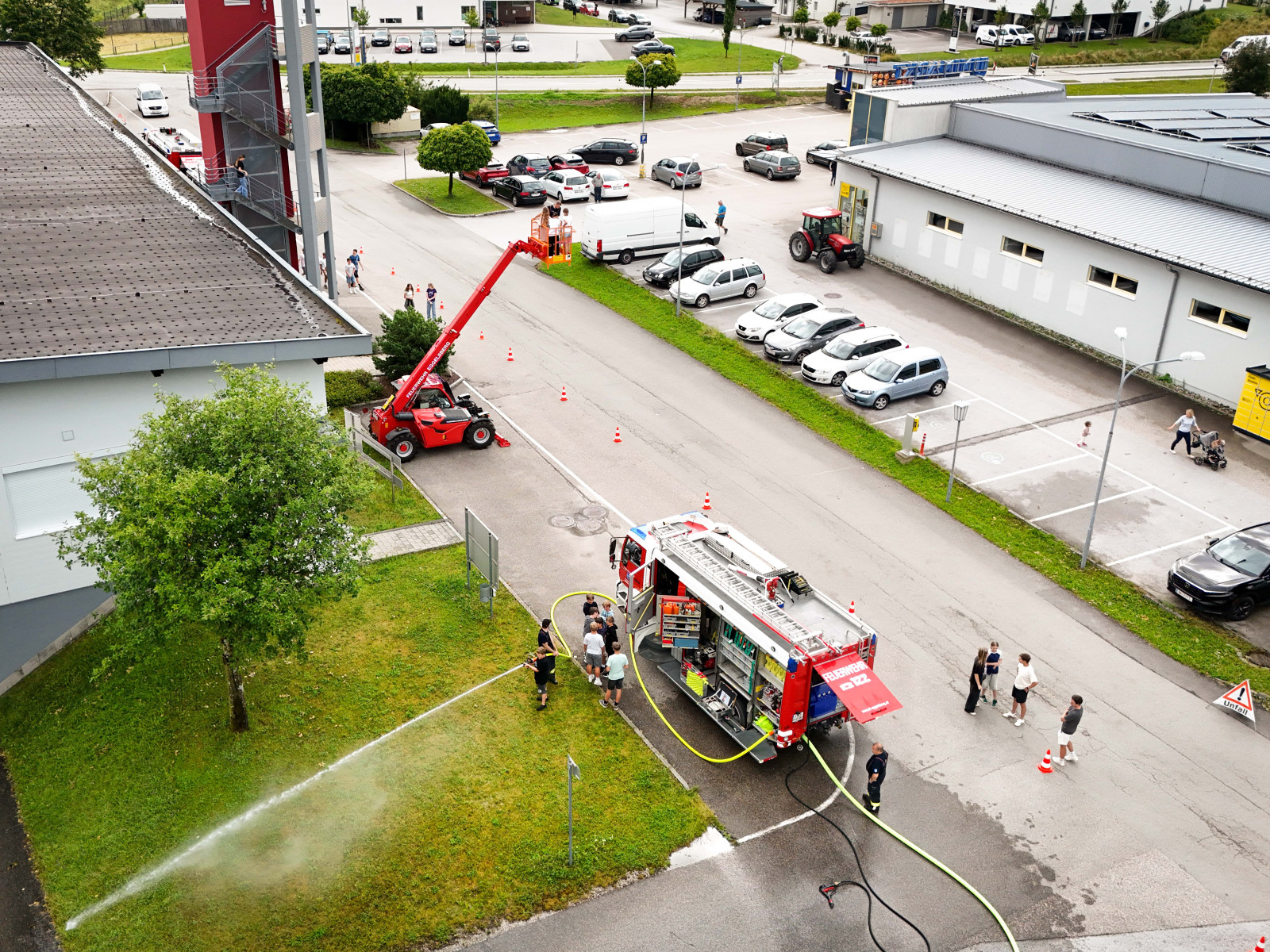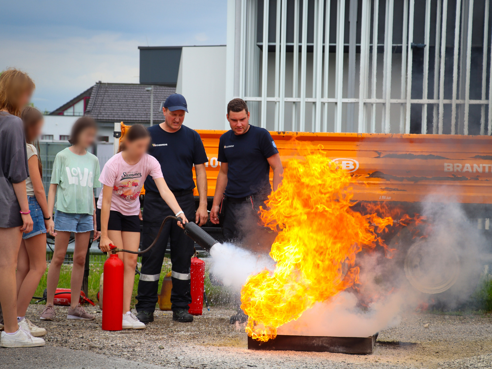 Im Stationsbetrieb konnten die Jugendlichen viele spannende Dinge über die Feuerwehr kennenlernen. Neben dem klassischen Löschangriff konnte auch das hydraulische Rettungsgerät probiert oder einmal eine volle Atemschutzmontur getragen werden. Die Einsatzfahrzeuge durften besichtigt oder auch die Wärmebildkamera getestet werden. Auch der sichere Umgang mit dem Feuerlöscher und das richtige Verhalten im Brandfall wurde trainiert. Highlight war wie jedes Jahr die Aussicht von ganz oben am Teleskoplader zu genießen. Zum Abschluss wurde noch ein Fettbrand simuliert, um die Auswirkungen von Wasser als Löschmittel zu zeigen.
