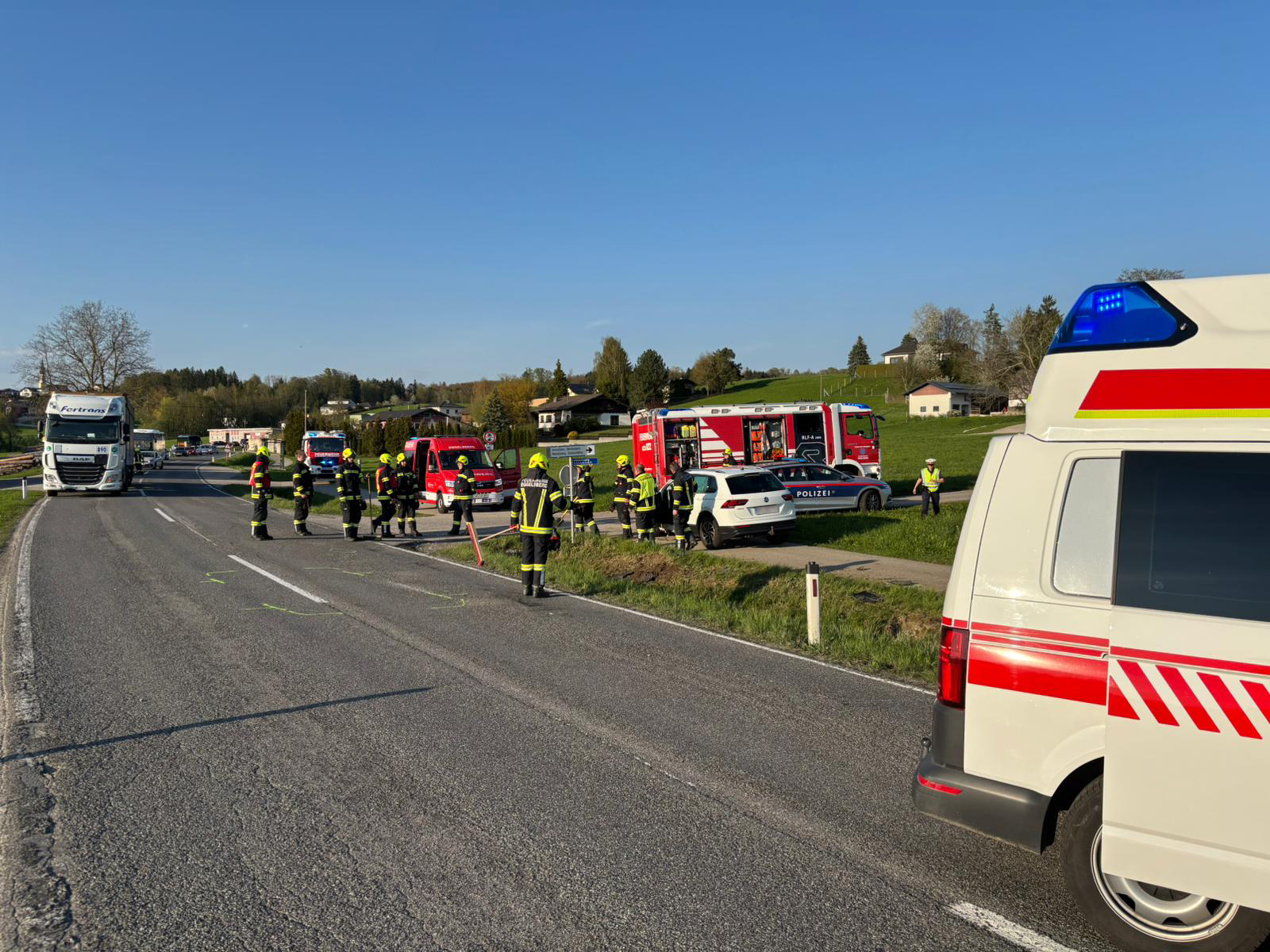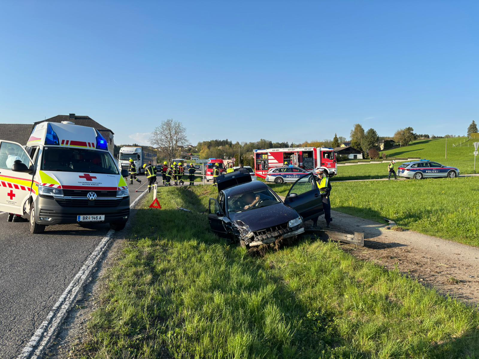 Ein 61-Jähriger aus dem Bezirk Braunau lenkte seinen PKW am 17. April 2026 gegen 18:10 Uhr auf der B156 von Eggelsberg kommend Richtung Habersdorf und überholte im Bereich Kleinschäding, Gemeindegebiet Eggelsberg, einen LKW. Kurz zuvor fuhr ein 59-Jähriger aus dem Bezirk Braunau mit seinem Auto von der Gemeindestraße Kleinschäding nach rechts auf die B156 und wollte kurz darauf wieder links in die Gemeindestraße Kleinschäding abbiegen. Diesen Abbiegevorgang dürfte der überholende 61-Jährige zu spät bemerkt haben und es kam bei StrKm 36,610 der B156 zu einer Kollision der beiden Fahrzeuge. Beide Lenker wurden unbestimmten Grades verletzt und nach der Erstversorgung in das Krankenhaus Oberndorf bei Salzburg gebracht.